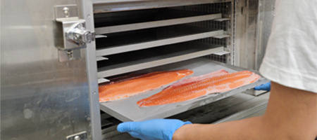 北部丸一株式会社様は、鮮魚を新鮮に保ったままお客様へ提供するために「プロトン凍結機」を導入。小型化されたプロトン凍結機は、磁力と電磁波を使って食材を一気に冷凍することが可能で、急速に冷凍することで魚の細胞を壊さないため、解凍時に旨味を外に逃がしません。おろしたての様な新鮮な味わいをお届けできるのも北部丸一株式会社様の強みとなっています。
